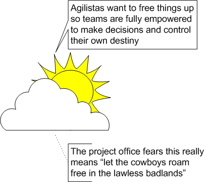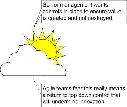One of the challenges faced by organisations is that the traditional measures used to monitor and control teams are not necessarily suited to the style and approach of agile teams, while agile approaches may seem to remain silent on, or even discourage, the outside governance of project teams.
