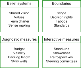 (note for fans of risk management that I neglected to include risk measures in the diagram above because risk measurement and management permeates through all four levers rather than because agile teams don’t need both diagnostic and interactive measurement of risk).